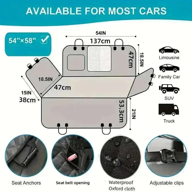 Upgrade your car’s interior with this premium, waterproof, scratch-resistant dog hammock seat cover. Designed to protect your car seats from dirt, spills, and pet hair, this versatile cover is perfect for dogs...
